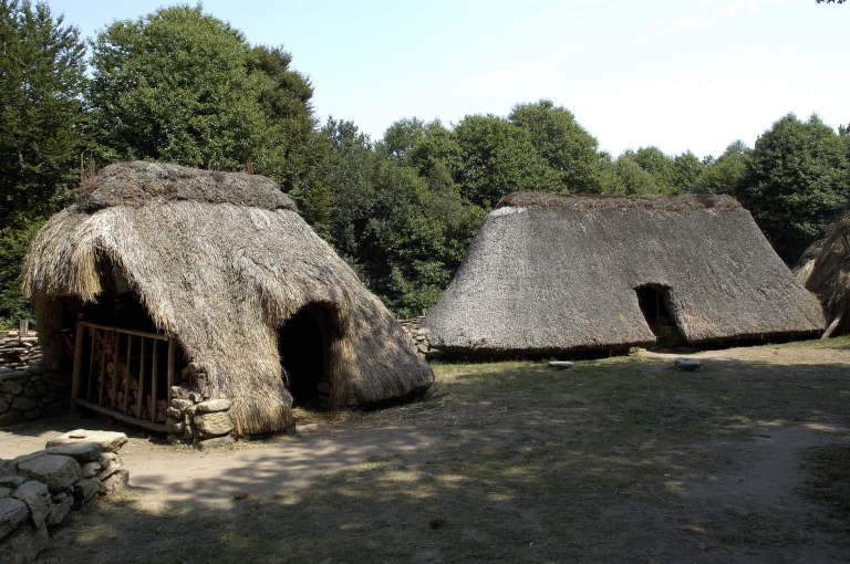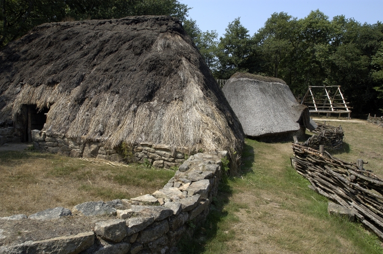 Le village de l'an mil est implanté sur un site de hauteur, au bord du plateau dominant la vallée de la Sarre. Le site d'origine fait un hectare. Les vestiges des murs encore debouts ont permis de réaliser un premier plan du village. Celui-ci comprenait dans son enceinte, une partie des cultures et des enclos pour les animaux. On a mis en évidence dix sept bâtiments dont treize maisons d'habitation de plan rectangulaire de 8 à 10 mètres de long sur 4 à 6 mètres de large dont les murs pignons peuvent être droits ou arrondis. Les foyers sont situés au centre de la maison, décalés vers la partie la plus haute. Il s'agit d'un habitat mixte où hommes et animaux vivent sous le même toit. Les vestiges de murs sont peu élévés : 80 centimètres de haut maximum, en moellon de granite et terre argileuse. La charpente à croupe reposait sur les murs par l'intermédiaire d'une sablière. Les portes étaient placées dans le mur gouttereau. La couverture végétale était en genêt, bruyère, hesk (herbe des marais) et chaume. Elle enveloppait la construction presque jusq'au sol. Le site archéologique qui a gardé son intégrité est à proximité d'un site expérimental dans lequel on a reconstitué un village à partir des vestiges retrouvés et des recherches effectuées sur l'architecture, la culture et l'élevage.
