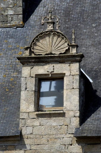 Lucarnes à fronton à coquille couronné et encadré de balustres sur piédestal à décor de losanges. Sur le linteau de la lucarne est est sculpté en relief le blason des Rimaison.