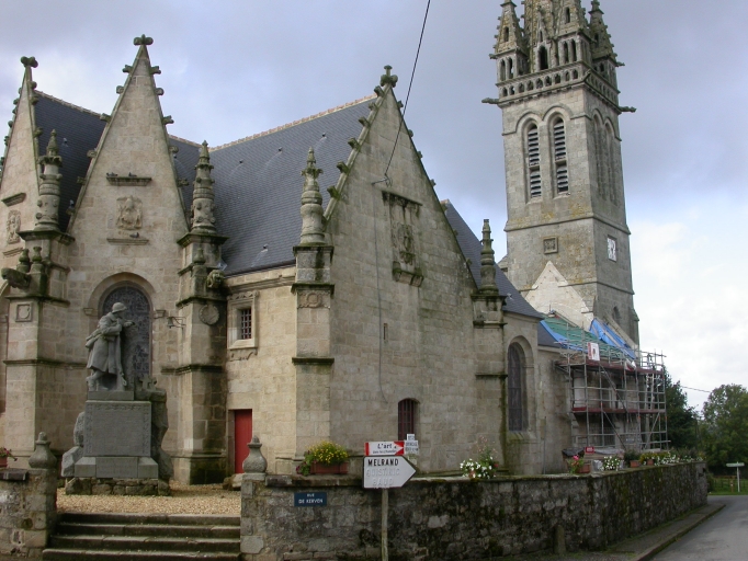 Le choeur à trois pans et à pignons à noues multiples est la partie la plus intéressante de l´édifice. Il porte la date de 1560 qui accompagne le blason des Rimaison. Il est du type popularisé par l´atelier morlaisien Beaumanoir, mais la proximité d´Hennebont ainsi que la date tardive de réalisation incite à y voir comme à Baud, l´influence du chantier de Notre-Dame de Paradis. Mais c´est aux Rimaison, initiateurs du décor Renaissance en pays de Baud, que l´on doit l´adjonction d´éléments originaux, des candélabres Renaissance un peu lourds, en lieu et place des pinacles gothiques attendus.