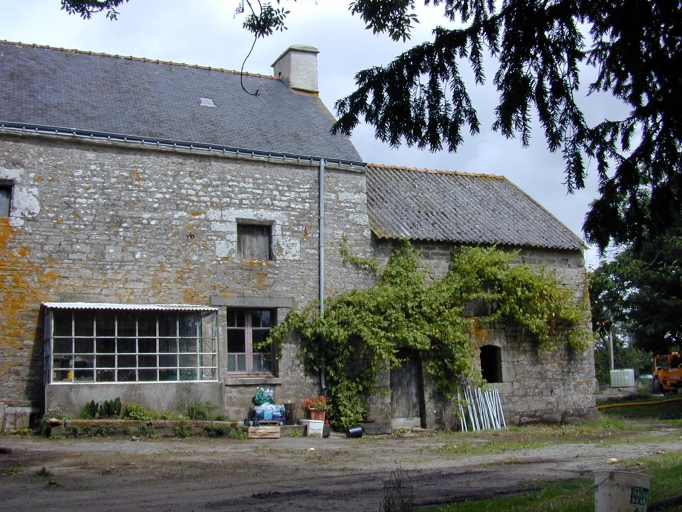 Ferme en moellon régulier de granite, couverte en ardoise, rez-de-chaussée et haut comble à surcroît, logis et étable en rez-de-chaussée transformé, porte en accolade. Etable en alignement en rez-de-chaussée à haut-surcroît en moellon.