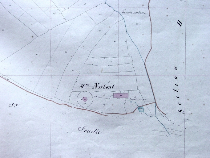 Moulin construit en 1805. Arbre de transmission porte la date 1942. Meule tournante porte la date 1949. Moteur thermique pour bluterie, installé dans la 2e moitié du 20e siècle. A cessé de fonctionner vers 1985. Restauré par une association après le tempête de 1987. La ferme incluant le logis du meunier est reconstruite en 1894 (date portée), l'étable est datée 1807 ; l'ensemble est remanié dans la 2e moitié du 20e siècle. C'est un moulin qui produisait au 20e siècle, farine de seigle pour les habitants des environs, farines d'avoine et d'orge pour les animaux.