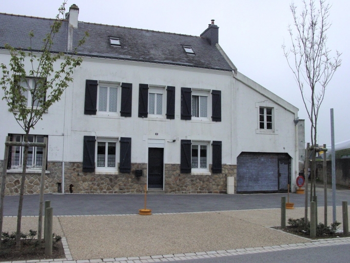 Maison construite en retrait de la rue, comprenant un garage (particulier) en appentis et en alignement à l'est, et des hangars pour le garage de réparation automobile dans la cour postérieure. Façade de type ternaire, enduite seulement à mi hauteur pour le RDC.