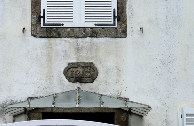 Maison construite en 1845 et représentée sur le plan cadastral de l'époque, sans les deux appentis latéraux symétriques. Date portée dans un cartouche au dessus de la porte.