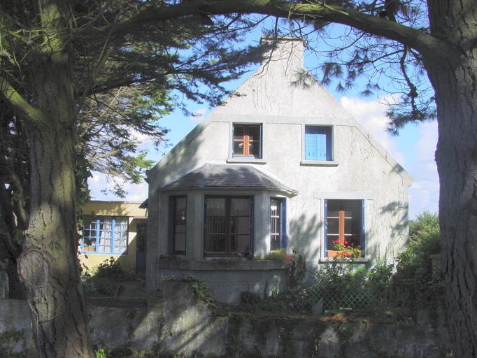 Maison construite au fond de l'impasse Mané-Lann. Courette latérale à l'ouest avec dépendances (resserre), jardin latéral postérieur. Pavillon de plan allongé avec étage en surcroît. Bow-window en pignon sud. Enduit avec fausse chaîne d'angle et surépaisseur aux entourages des baies.