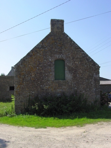 Logis-étable à deux portes, celle du logis a été élargie, sous haut surcroît servant de grenier, ouvert d'une porte haute en pignon est et d'un jour en façade sud. L'étable, à l'est, est éclairé d'un fenestron en pignon, le logis d'une fenêtre dotée de barreaux de défense. La façade nord est aveugle. A l'exception de la porte haute, remploi d'une porte en anse de panier, toutes les ouvertures sont à linteaux droits. La couverture en chaume, vue en 1975, est remplacée par de l'ardoise.
