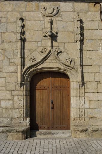 La porte sud à anse de panier est ornée d'une accolade à choux sommée d'un fleuron. Deux pilastres ornés de cercles et de losanges l'encadrent. Au-dessus : un écu et un phylactère portés par deux anges.