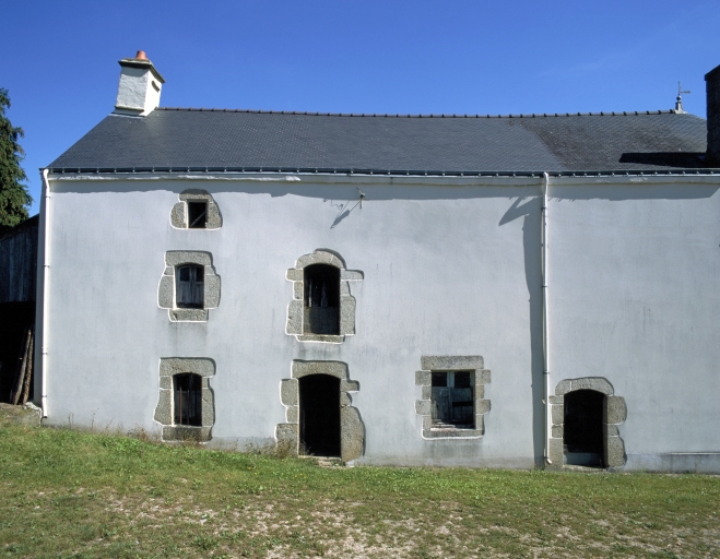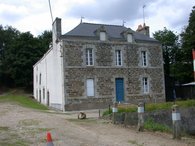 La ferme initiale comprend, sous le même toit, un logis de plan massé et une étable contiguë. L'ensemble est surmonté d'un haut comble à surcroît abritant un double grenier, accessible par une porte haute en façade. Les murs sont recouverts d'un enduit. Un second logis est construit perpendiculairement à la ferme. Il présente un étage carré et une élévation ordonnancée couverts d'un toit à croupe. La mise en oeuvre est en moellon de schiste assisé avec chaîne d'angle, encadrement de baies, bandeaux et corniche en granite.