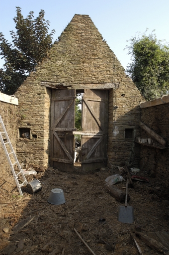 Cette grange est construite en pierre de taille de schiste dotée d'une porte charretière qui n'est pas, contrairement aux habitudes morbihannaises, en plein cintre mais à linteau droit en bois protégé par un larmier de schiste. Ce dernier est encore associé à l'encadrement d'origine de la porte, dont les angles soigneusement assemblés s'adoucissent en quart de rond. Le toit de chaume menace ruine.