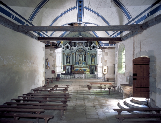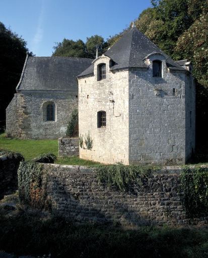 La chapelle, en pierre de taille de granite et de schiste, présente un plan en croix latine couvert d'un toit à croupe brisé. La pente naturelle du terrain crée une dénivellation entre la nef et le bras sud. Ce dernier est plus long que le bras nord, repris et allongé en moellon, couvert d'un toit à pignon découvert. La façade ouest est dominée par un clocher de type cornouaillais que surmonte une flèche en maçonnerie. Le choeur est prolongé à l'est par une sacristie polygonale.