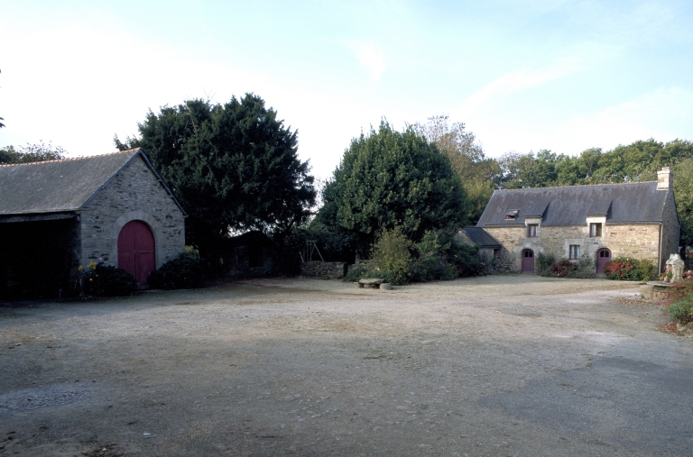 A l'ouest, le logis secondaire, de type logis étable à deux portes, possède une cheminée dont les piédroits datent de la fin du 16e ou du début du 17e siècle, mais consoles, linteau et hotte ont été refaits au 19e siècle. La soue en retour sur ce logis secondaire, construite au 19e siècle bien que figurant sur le plan cadastral de 1828, est en moellon et couverte en appentis. La base du puits, du 17e siècle, est construite en pierre de taille de schiste ; la margelle est monolithe, en granite. Les piédroits ont été ajoutés au cours du 19e siècle et sont ornés d'un Christ et d'un ostensoir. Le four à pain en moellon de granite s'accompagne d'un if dont la ramure servait à rabattre les braises à terre, afin d'éviter que le feu ne prenne aux toitures de chaume : cette tradition locale a pu être observée dans d'autres lieux du canton. Les deux granges figurent sur le cadastre ancien. La première, à proximité du logis, est restaurée au 19e siècle. La seconde bordée par l'aire à battre (cadastre ancien, parcelle 499) est reconstruite à la fin du 19 siècle.