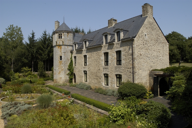 Le logis est en pierre de taille de granite pour la tour et la travée d'entrée, en moellon de schiste et granite pour le reste du bâtiment. Sa structure est celle d'un grand manoir de plan allongé à trois pièces par niveau, avec cuisine, salle et pièce d'usage inconnu (chambre ?) au rez-de-chaussée, salle haute et deux chambres à l'étage. Il existe un décalage de niveau entre la partie surmontant la cuisine, plus basse et la partie sud, probablement créé par les marches de l'escalier. Ce dernier en vis et en pierre de taille est logé dans une tourelle polygonale hors-oeuvre et surmonté d'une pièce haute avec cheminée. Le comble était un simple grenier au 18e siècle, mais on ne sait s'il était habitable à l'origine (salle haute ?). L'ensemble est couvert en ardoise d'un toit à pignon découvert au nord, pignon couvert au sud, la tour étant couverte d'un toit polygonal. Les communs sont en pierre de taille de granite, couverts en ardoise à toiture à pignon découvert. Ils sont en rez-de-chaussée à double étage de grenier. Les ouvertures du rez-de-chaussée consistent en trois portes et deux oculus. Un escalier extérieur refait dessert la porte haute.