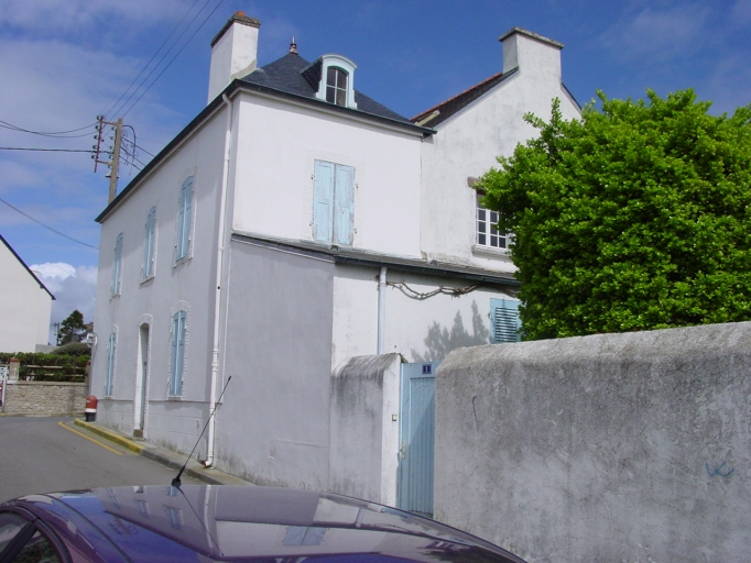Maison d'angle, avec pignon sur rue de la Libération et façade principale sur rue Rio. Dépendance en appentis contre pignon sud et remise-garage isolé en fond de parcelle. Jardin clos d'un haut mur enduit, chaulé. Façade de type ternaire, entourages des baies en briques peintes. Toiture à croupe avec épis de faîtage en terre cuite. Lucarne en bois, ouvragée d'un linteau cintré et ailerons, dans le pignon sud.