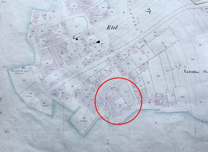 Ancienne presses à sardines figurées sur le plan cadastral de 1811 et nommées comme telle (bâtiments nord) sur celui de 1851. A cette date elles appartiennent à la famille Rozier de Nantes. En 1875 les statistiques industrielles spécifient qu'il s'agit d'une usine de conserve de sardines à l'huile (AD56, 1Z 174). Entre temps, entre 1851 et 1857, une partie des espaces libres, face aux quais est louée par Rozier en plus d'une concession sur le DPM, à l'administration des Douanes, pour faire construire une extension des casernes existantes (AD56, S 218). Il s'agit de l'origine du long bâtiment sud de plan rectangulaire, utilisé comme caserne de douanes au moins jusqu'à la fin des années 1870. En 1894 les soeurs de la Charité Saint-Louis devenues propriétaires de l'ensemble des bâtiments, ouvrent trois classes pour filles. En 1902, l'établissement scolaire est fermé. Les bâtiments sont achetés par Griffon, négociant mareyeur à Etel qui s'y réserve une habitation est met en location le reste des locaux. En 1934 les soeurs de Kermaria achètent la propriété et ouvrent à nouveau, deux ans plus tard, une école pour filles dite école Sainte-Anne. L'enclos du jardin des soeurs situé de l'autre côté de la rue sur les anciens quais est encore visible sur une carte postale du début des années 1960 (Editions La Pie). Vendue dans les années 1990, l'ancienne école est réhabilitée en résidence à appartements.
