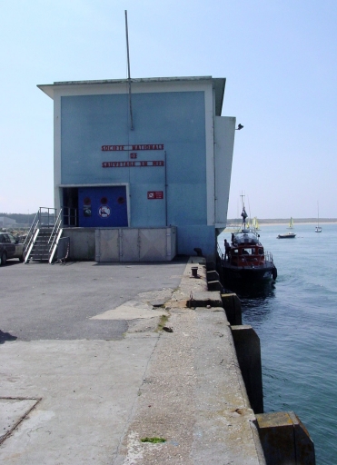 La station de sauvetage d'Etel est créée en 1866, sous la houlette de la Société centrale de sauvetage des naufragés. Sur un plan du port daté de 1884, figure le premier abri pour canot de sauvetage, construit sur un quai au nord du bassin d'échouage (AD56, S 169). La cale de lancement sera allongée en 1894. Un deuxième abri reconstruit sur la même rive mais plus à l'ouest est achevé en 1939. C'est un édifice en béton armé fondé sur poteaux et doté d'une rampe à glissières métalliques. Il est l'oeuvre de l'entreprise Limousin de Paris qui en fournit les plans (AD56, S 3077, plans). Enfin en 1962 est achevé le troisième abri de la station doté d'un système particulier de mise à l'eau latérale par bossoirs. De fait il est implanté en un nouvel emplacement, sur les quais bordant la rivière d'Etel.