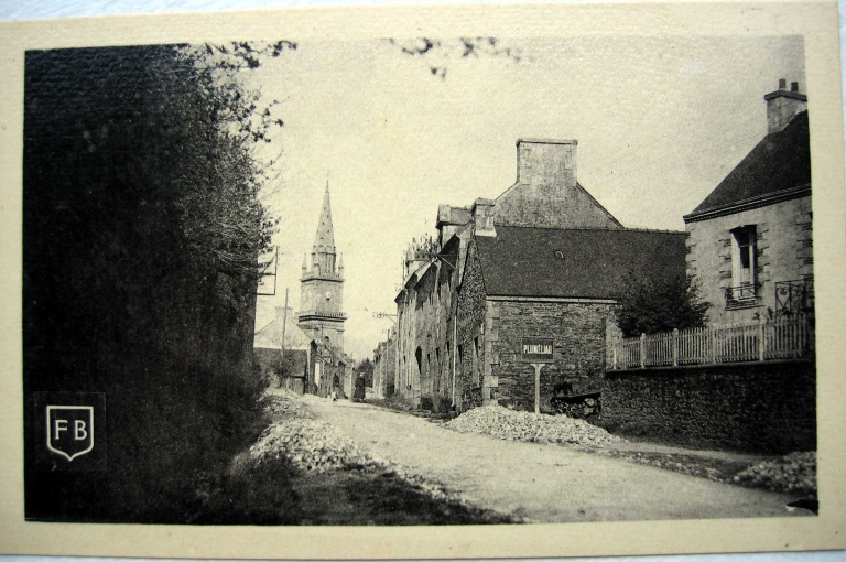 Le village de Pluméliau remonte probablement au Moyen-Age, mais aucun témoigange bâti ne subsiste de cette période. Sa structure en étoile avec disposition irrégulière des maisons, probablement en majorité des fermes, apparaît sur le plan cadastral de 1828. La description du bourg dans l'Annuaire du Morbihan de 1836 confirme qu'il n'est habité que de cultivateurs et de journaliers et que ses dimensions sont modestes comparées à la population totale de la commune. Vers 1830, la mise en oeuvre de la route départementale D1 qui traverse le bourg influe sur son développement, très important à la fin du 19e siècle.