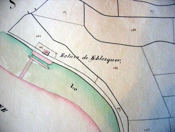 Maison éclusière probablement construite vers 1830 ; l'écluse figure sur le plan cadastral de 1828. Elle est reprise vers 1860, ainsi que semble le signaler le décalage de la souche de cheminée sud. Enfin les fenêtres sont élargies au milieu du 20e siècle.