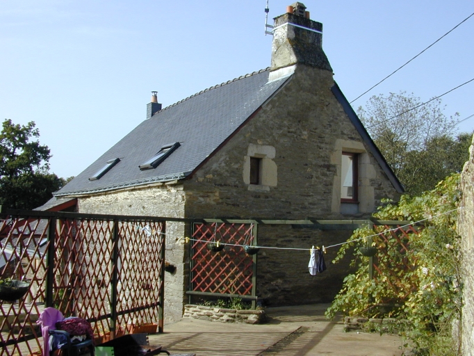 Ensemble formé d'un logis-étable à comble à surcroît et d'un logis sur dépendance en alignement. Le logis-étable a sa façade principale au sud, avec accès secondaire au nord par une porte à linteau sur corbelets. Deux crèches en moellon, couvertes en appentis, sont adossées au nord et au sud, côté ouest. Le second logis à l'est est constitué d'une pièce habitable accessible par un escalier extérieur au nord qui surmonte une dépendance à demi-enterrée côté sud, avec accès au nord par porte à linteau de bois. L'ensemble est en moellon de schiste avec ouvertures en granite.