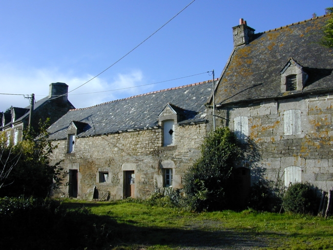 Un certain nombre de logis à étage du XVIIIe et du début du XIXesiècle sont construits sur le modèle de Kerdrého : à trois travées complètes ou incomplètes avec entrée latérale. Avec ses deux niveaux d´habitation, ce type de maison caractérise d´ordinaire l´habitat de notables ruraux. Les parties agricoles sont rejetées dans d´autres bâtiments en alignement du logis. L´entrée latérale pavée de granite loge l´escalier tournant au fond, elle est séparée de la salle commune par une cloison de bois. L´étage habitable est occupé par deux pièces à feu à usage de chambre. Cette distribution sépare non seulement les fonctions d´habitation et d´exploitation mais différencie également les activités diurnes des activités nocturnes. Cette nouvelle organisation de l´espace domestique imité de l´habitat urbain montre une recherche évidente de modernité. Un souci décoratif s´affiche en façade dans la mise en oeuvre alternée du schiste et du granite. L´utilisation de ces deux matériaux s´explique sur une maison implantée dans une zone de contact entre deux couches géologiques. Les linteaux des baies en segment d´arc sont d´usage depuis le deuxième quart du XVIIIe siècle. Les ardoises décorées du lignolet d´origine ont été conservées et remployées sur le faîtage de la nouvelle couverture. Les silhouettes découpées habilement dans l´ardoise se détachent en ombre chinoise, visibles de loin : un cavalier (Jeanne d´Arc), un autel, un panier avec colombes portant la date 1797. C´est parfois sur ces éléments décoratifs fragiles, aujourd´hui disparus, que sont inscrits les millésimes des maisons.