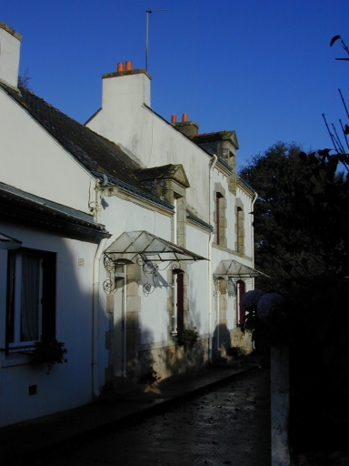 Logis à une pièce en rez-de-chaussée et deux à l'étage, enduit. Logis secondaire à comble à surcroît à pièce unique en alignement.