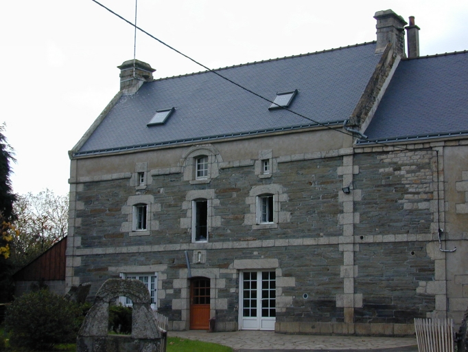 Le logis est construit en pierre de taille de schiste avec base et ouvertures en pierre de taille de granite. Il est de type ternaire avec étage surmonté d'un comble à surcroît éclairé d'une lucarne en pierre de taille et de deux jours ; niche à Vierge au dessus de la porte d'entrée. Etable en alignement en pierre de taille de schiste et moellon enduit à haut comble à surcroît. Grange à ouverture à porte charretière en plein cintre en pignon construite en moellon équarri de schiste avec ouvertures en granite.