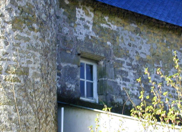 La composition initiale du manoir est partiellement révélée par une haute toiture centrale en pavillon et par la tour d'escalier postérieure. Sa structure initiale, classique pour la deuxième moitié du 16e siècle, se composait de deux pièces en rez-de-chaussée, salle et cuisine, surmontées de deux chambres, distribuées par un escalier en vis dans une tourelle hors-oeuvre sur la façade postérieure. La salle, de dimensions très modestes, subsiste, ainsi que la chambre qui la surplombe. L´une et l´autre ont conservé leurs cheminées d´origine, ornées d´un blason, buché sur le linteau de la cheminée de la salle, apparent mais non identifié dans la chambre. Les poutres, conservées dans la salle, sont sans doute cachées par le faux plafond dans la chambre. L´escalier en vis en bois de chêne est intact dans la tourelle. La partie est, visible sur le plan cadastral de 1844, a disparu entre cette date et l'époque où Galles fait un dessin de la façade postérieure, dans la deuxième moitié du 19e siècle. Le haut d'un piédroit de cheminée déposé dans la cour (fig.6) pourrait provenir de cette partie disparue, probablement de la cuisine au rez-de-chaussée.