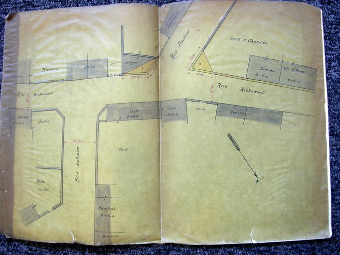 A. D. Morbihan. 3 O 2183. Ville de Vannes. Voirie urbaine. 1916-1925. Alignements. 16 février 1925. Projet d´alignement des raccordements de la rue Pasteur et Autissier. Plan dressé par Rousseau.