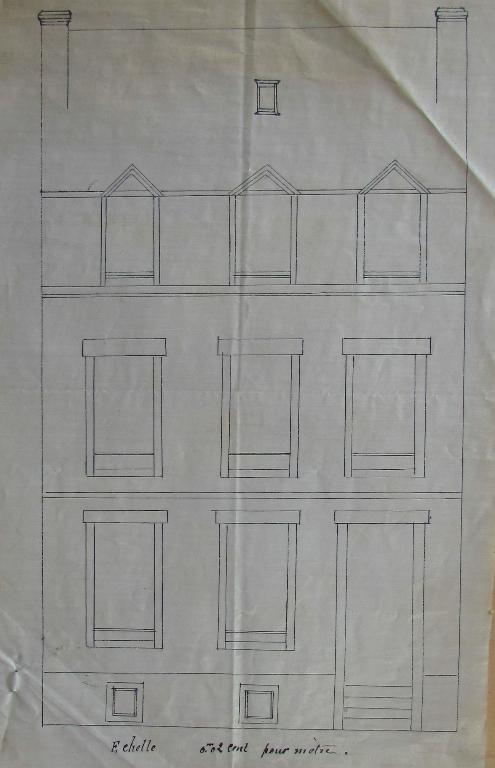 A. M. Vannes, 1 O 216 (1874/1883), dessin élévation façade nord : "maison Havret, rue Saint-Louis" daté mai 1880.