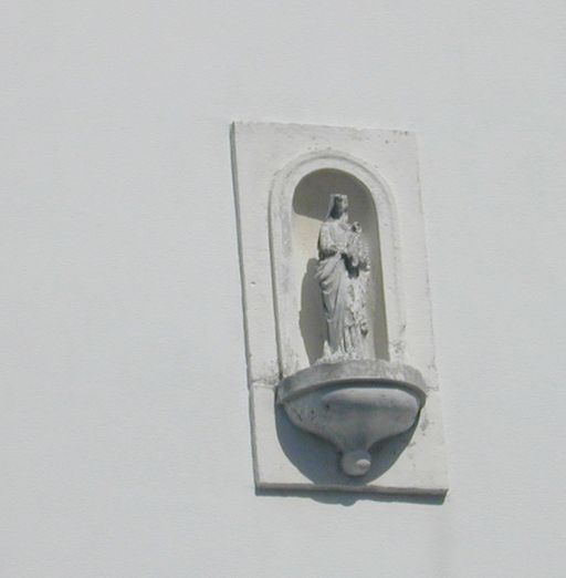 Maison de type ternaire, variante à travée incomplète avec niche à Vierge, au centre. Les encadrements de baies sont en brique, enduits pour imiter le granite. Au Sud, adjonction d'une travée sur garage dont les ouvertures sont en ciment. A l'origine la maison est isolée.