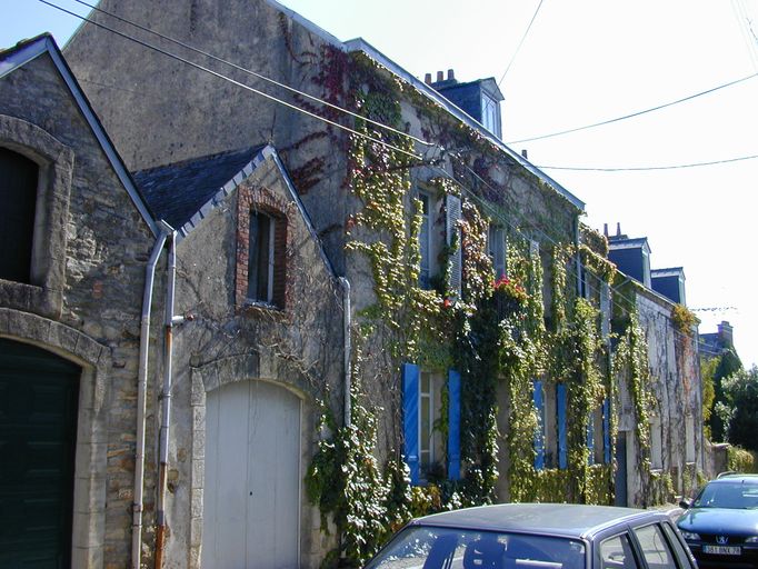 Maison enduite, initialement de type ternaire, à plan double en profondeur à quatre travées à ouvertures en granite ; lucarne en bois. Base en appareil polygonal. Ecuries en alignement à pignon sur rue à ouvertures en granite et brique.