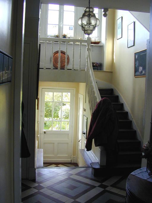 En rupture avec le bâti, cette maison originale montre une variante du type ternaire, double en profondeur, avec loggia sur laquelle donne une pièce en rez-de-chaussée et la porte d'entrée, contrairement aux autres exemples de maisons à loggia vannetaises qui abritent seulement la porte d'entrée. La travée axiale est en ressaut sur les deux façades, et correspond en élévation postérieure à l'escalier. L'architecte a privilégié la façade sur la rue Albert Ier au détriment de l'orientation sud qui donne sur la rue V. Basch. La maison est implantée sur une parcelle d'angle, en retrait de la rue sur un jardin environnant.