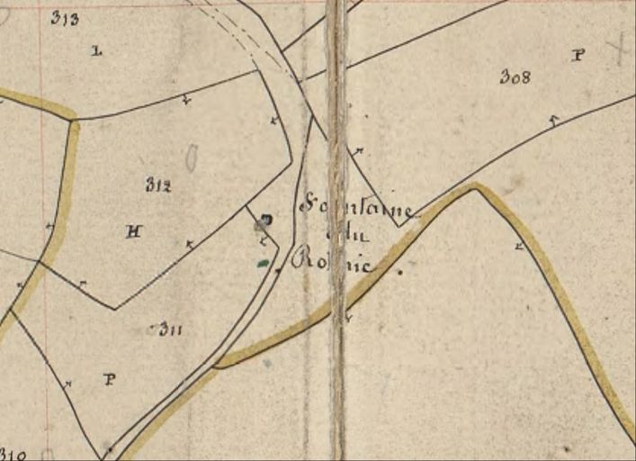 Située au sud de la chapelle sur un ancien chemin ruarl, la fontaine en pierre de taille est de type à pignon. Bassin limité par des murets en hémicycle en moellon.
