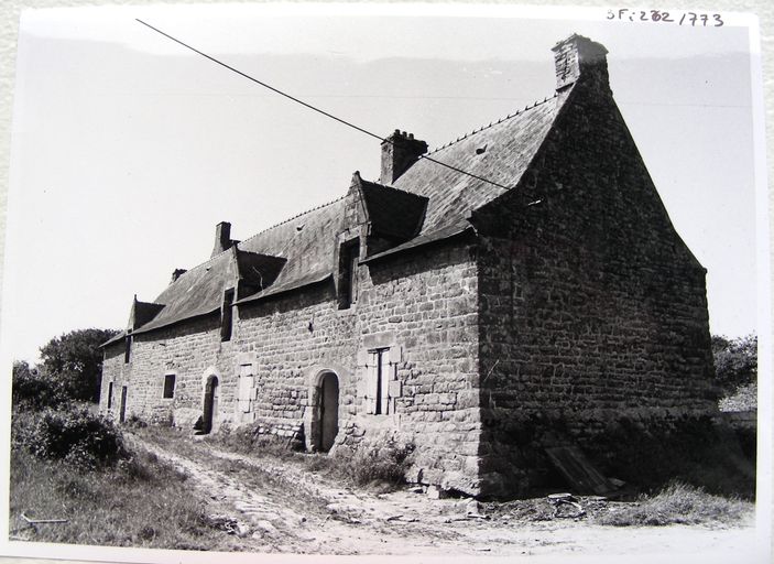 Les bâtiments se développent autour de la cour enclose. Le logis au sud de la cour développe sa façade à un étage carré à trois travées incomplètes vers le nord : au rez-de-chaussée, l'ouverture Est est aujourd'hui remplacée par une porte charretière en plein cintre. L'intérieur n'a pas été vu. L'est de la cour est occupé par la ferme dont la façade regarde vers l'est hors de l'enclos et qui ne possède pas d'ouvertures sur la cour. Le plan en alignement montre un logis-étable au centre complété d'une seconde pièce habitable au nord, peut-être une chambre. Au sud, l'alignement se prolonge par une dépendance. Les pignons découverts suivent la pente du toit brisée par de forts coyaux. A l'ouest de la cour, une porte en plein cintre ménagée dans l'enclos conduisait au jardin lui-même enclos. Au nord de la cour, la maison du jardinier, en rez-de-chaussée avec comble à surcroît ouvert d'une lucarne et d'une gerbière à fronton semi-circulaire en pierre de taille se compose d'un logis à pièce unique à l'est et d'une étable ou écurie à l'ouest.