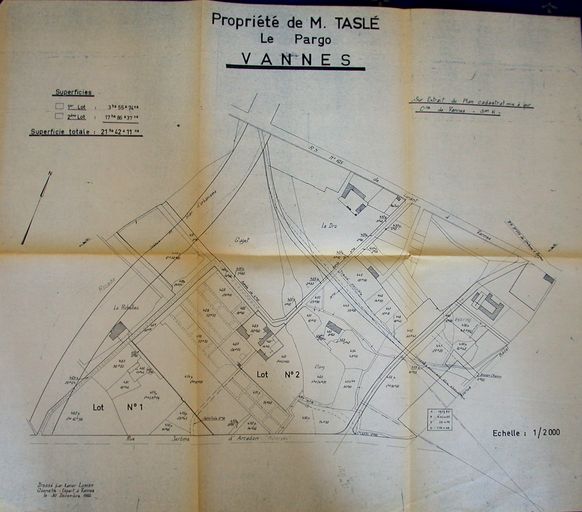 A. M. Vannes 1G58 matrices cadastrales de 1809 pour le château du Pargo.