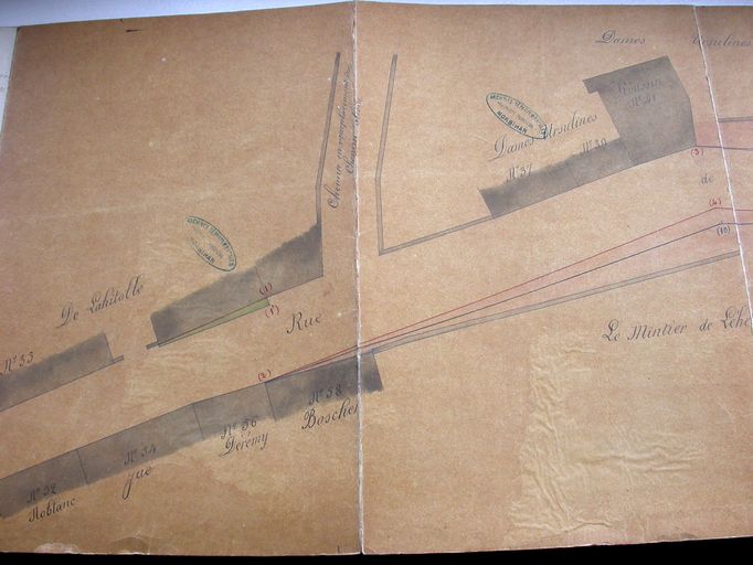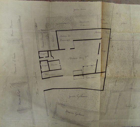 Le plan dressé pour l'installation d'un générateur d'acétylène dans l'entreprise Fily frères, entreprise générale de mécanique et de serrurerie (charpentes métalliques, machines agricoles, élévation d'eau) installée aux n°10, 12, 14 de la rue. révèle l'emplacement d'une célèbre imprimerie vannetaise, l'imprimerie Colin aujourd'hui détruite et remplacée par les immeubles n°18 et 20 de la rue.