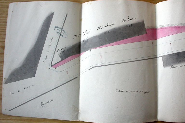 A. D. Morbihan 2 Fi 477. Vue de la ville de Vannes du costé du port, dessin de Robien, milieu 18e siècle.