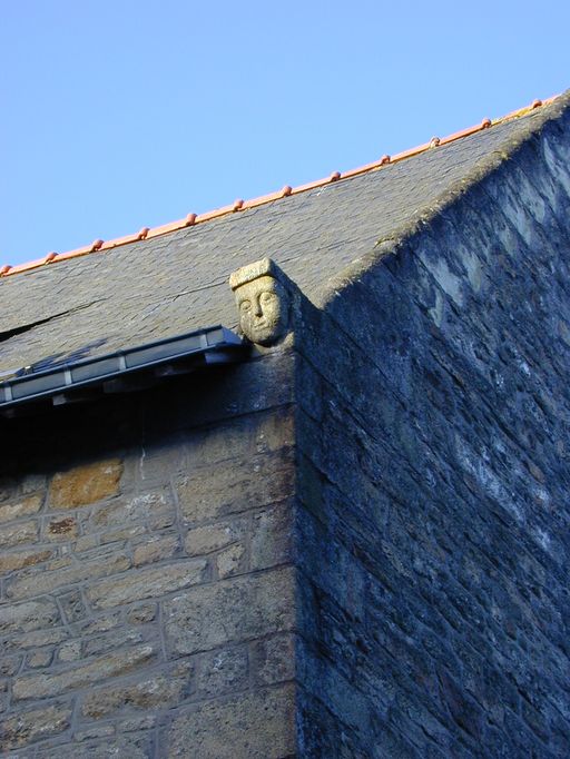 Tête sculptée sur les pierres d'assise des rampants nord-ouest et nord-est.