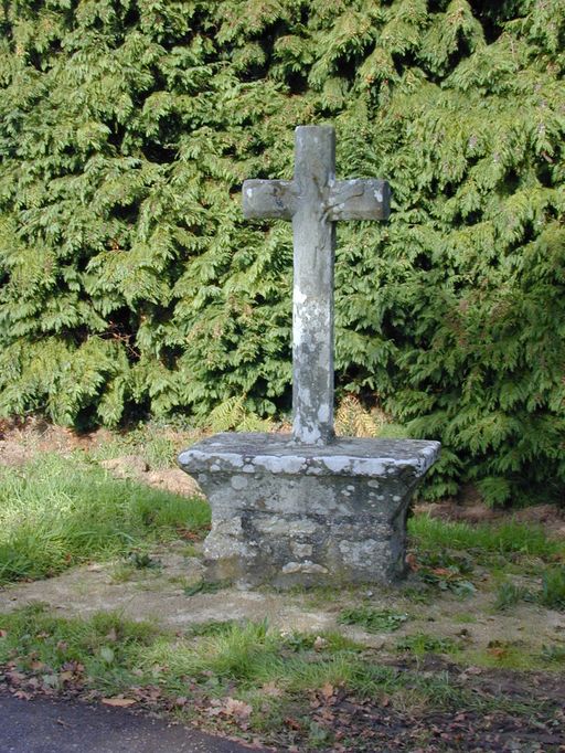 Croix formée d'un fut monolithe de section circulaire reposant sur un soubassement en forme d'autele en pierre de taille, à corniche à cavet. Le fût est sculpté dans la masse, côté sud, d'un Christ en croix, côté nord d'une Vierge de Pitié qui repose sur un culot.