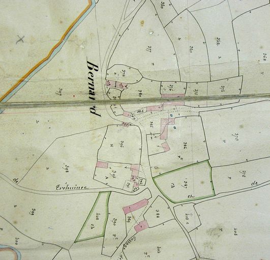 Ferme construite en deux campagnes : la première, correspondant au logis-étable, est daté 1817 sur la porte. La seconde en prolongement vers le nord, intervient peu après et est composée d'une chambre et d'un cellier. Dépendance contemporaine en avancée très remaniée. Puits daté 1838. Fournil 18e siècle ou 1ère moitié 19e siècle, figurant sur le plan cadastral de 1844.