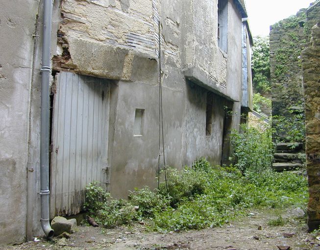 Maison principale sur rue avec soubassement en granite, enduit aux étages. Elle possède deux étages carrés et un étage de comble. Un couloir latéral dessert l'escalier qui occupe l'angle nord-est du bâtiment et est éclairé par une série de jours irréguliers ouverts dans la façade postérieure. L'escalier d'origine était à retours avec jour avec balustres moulurés et desservait également l'aile sur cour. L'habitation sur la cour, en pan de bois avec encorbellement, possède un étage carré et un étage de comble. L'étage est desservi par un escalier droit en bois occupant l'extrémité est du bâtiment dans une cage en pan de bois. Le conduit de la cheminée de l'étage, sur le gouttereau sud, interrompt l'encorbellement du pan de bois en façade.