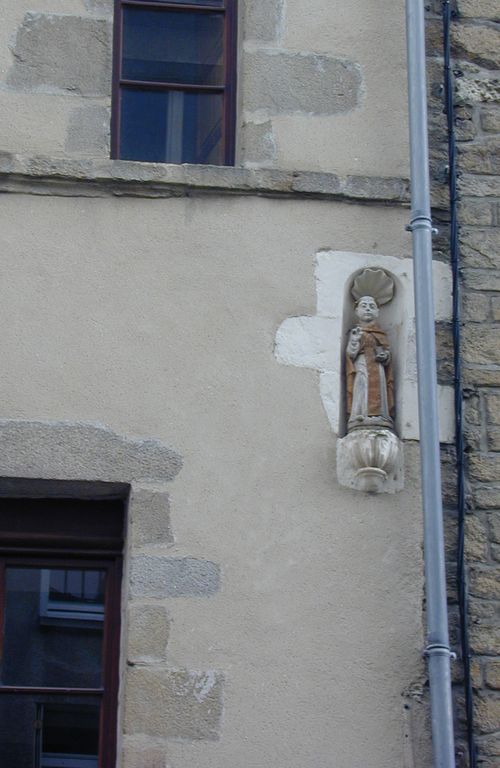 Maison construite vers 1650 par Noël Caro et sa femme sur un emplacement acquis par eux auprès de Jean Le Meilleur, sieur de Kerhervé, "premier acquereur du dit fond par acensement avec le passage pour aller à l'eau de lestier du moulin" d'après les sources. Les ouvertures à l'étage sur rue ont été en partie modifiées au 18e siècle. La maison a été transformée intérieurement en 2000 : l'escalier a été remplacé, les cheminées masquées. Elle possédait une aile en retour côté nord sur la façade postérieure, dont la première partie a été reconstruite vers 1900. La maison en prolongement de cette aile, cadastrée en 1844 parcelle 1816, date également du 17e siècle. Son toit, probablement un appentis, a été brisé au 19e siècle pour créer un étage de comble. Elle a été augmentée au 19e siècle d'un corps à l'ouest placée entre cette maison et l'aile en retour reconstruite au 20e siècle. Côté sud existait une autre maison, cadastrée en 1844 p. 1817, dont ne subsiste qu'une cheminée adossée au mur sud, près du rempart. Cette construction du 17e siècle fut par la suite reliée au corps principal sur rue par une série d'habitations secondaires aujourd'hui ruinées. A étage avec cheminées, elles étaient couvertes en appentis. L'étage était desservi par un escalier extérieur droit figurant sur le plan de 1844, qui subsiste. En 1840, un des propriétaires indivis de la maison donnant sur la rue (monsieur Gaucher) fait une demande à la ville de création de devanture de boutique en menuiserie ; laquelle est accordée l'année suivante : cette devanture n'a pas subsisté.
