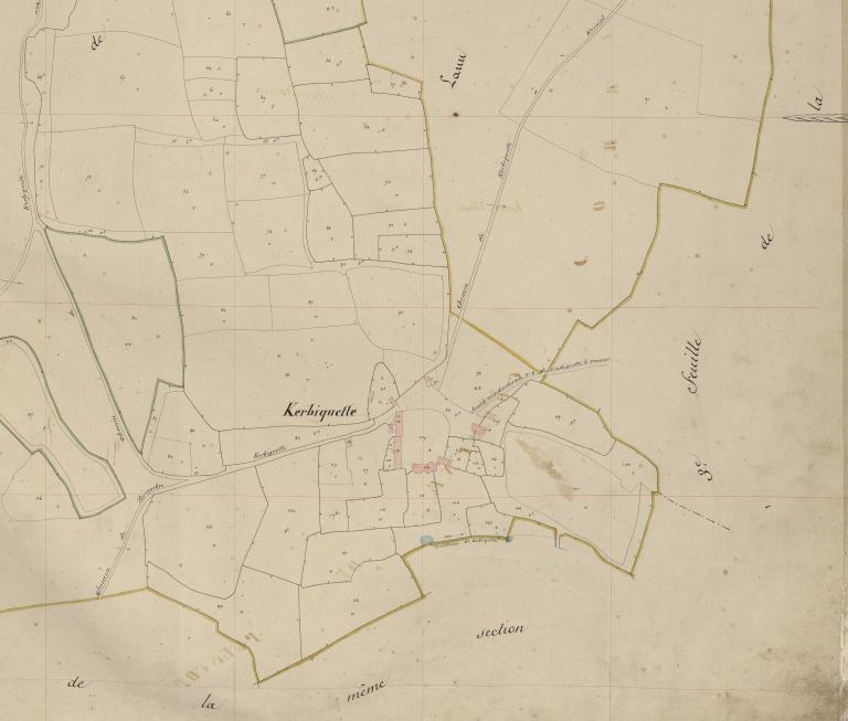 Initialement établi à l'ouest du chemin de desserte, le hameau de Kerbiquette, constitué d'un long bâtiment en équerre et d'une ferme avec dépendances isolées, s'est par la suite implanté de l'autre côté de la voie.