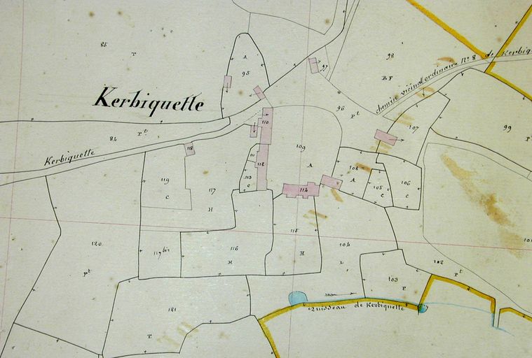 En forme d'alignement, la ferme construite en moellon, orientée à l'est, comporte en son centre, le logis, avec cheminée, une fenêtre ancienne et une moderne, et un évier dont l'évacuation se voit à droite de la fenêtre surmontée d'un petit jour. En prolongement vers le nord, une chambre sans feu ou une écurie. Au sud, l'étable comportait trois portes, le comble éclairé par deux gerbières et un jour bouché.