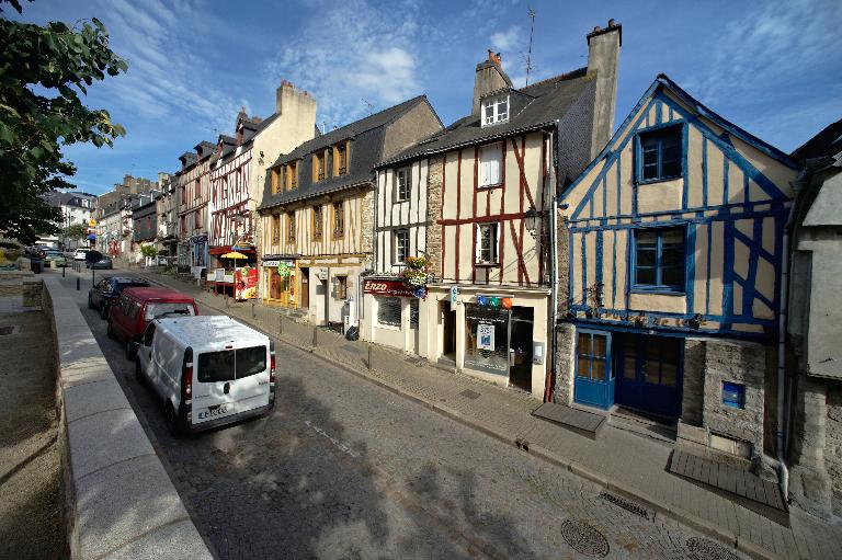 Rue médiévale établie sur la colline de boismoreau, bordant l'enclos de l'église Saint-Patern et suivant l'ancien tracé de la route de Vannes à Josselin ; elle sert de lien avec l'Hôpital Général, établi au 17e siècle. La rue est interrompue par le passage du boulevard de la Paix réalisé dans les années 1950-1960.