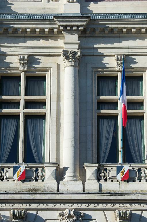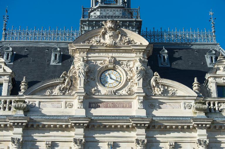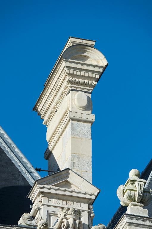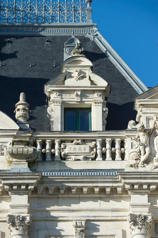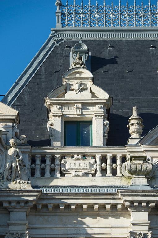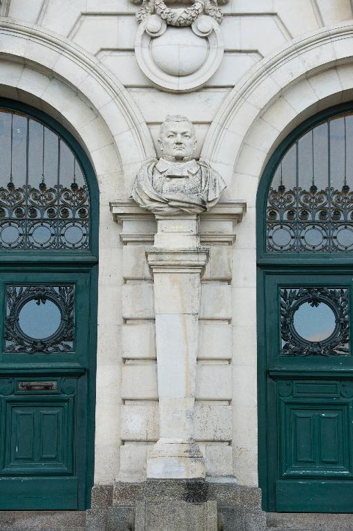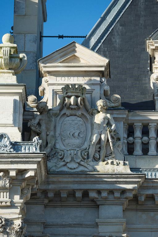 De tous les bâtiments que la commune de Vannes ait eu à construire, c’est sans nul doute l’édification de la Mairie qui suscita le plus de controverses. Destiné à remplacer un bâtiment vétuste et inadapté, situé depuis de XVIe siècle dans l’intra-muros, le nouvel Hôtel de Ville devient le symbole d’une municipalité républicaine voulue par le maire Emile Burgault. Inauguré le 11 juillet 1886, l’Hôtel de Ville est le reflet de son époque et de son concepteur, l’architecte vannetais Amand Charier (1844-1918). Comme celui de la Capitale, reconstruit à la même époque, l’Hôtel de Ville de Vannes prend la forme d’un château d’inspiration néo-renaissance, à quatre niveaux, mis en valeur par l’utilisation de la pierre blanche. L’architecte mit en exergue la partie centrale de la façade où deux cariatides encadrent l’horloge, dans l’axe d’un majestueux campanile rappelant l’ancien beffroi. Toutes les sculptures, qui constituent le décor d’architecture, ont été exécutées par le vannetais Auguste Le Merle, mais d’après des modèles réalisés à Paris par le sculpteur Henri Thiébault.