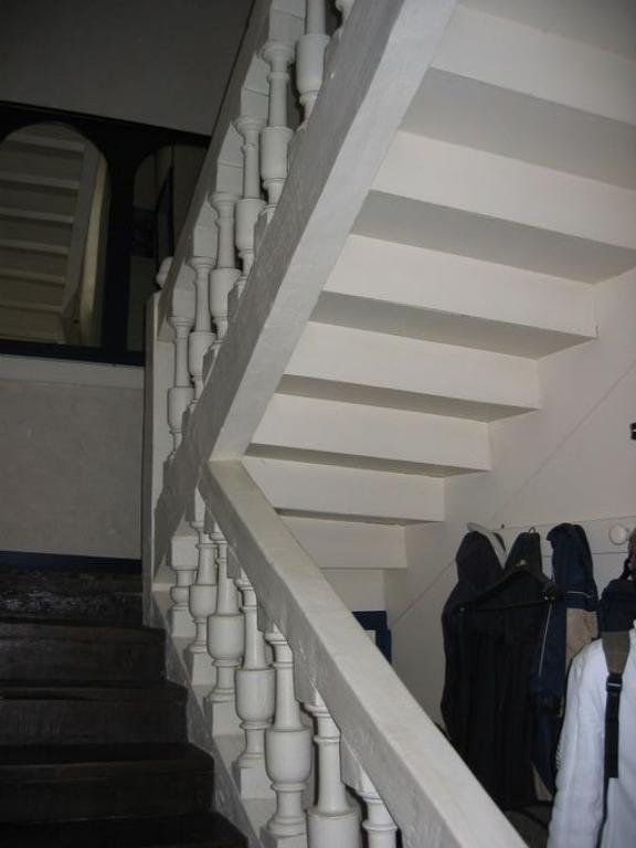 Maison en moellon de granite, à plan allongé, à étage habitable distribué par un escalier axial rampe sur rape à balustres de bois. Elle possède une double exposition. Le comble est éclairé en pignon par une fenêtre, à l'est par quatre lucarnes. L'élévation sur jardin possède quatre travées, celle sur la rue seulement trois. Un rang de trous de boulins au niveau du plancher du 1er étage a pu servir à fixer un auvent. La fenêtre en demi-étage sur l'élévation antérieure, côté sud, pourrait correspondre à l'éclairage de l'escalier de la maison antérieure.