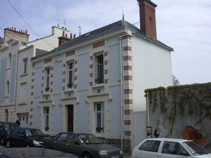 Maison de type ternaire en alignement sur rue simple en profondeur avec un corps en retour à deux travées qui ont un toit à croupe et des ouvertures en brique. L'accès au jardin est latéral. Appareil polygonal au rez-de-chaussée, souches de cheminées en brique. Alternance ciment/brique aux angles de la façade antérieure et aux entourages des fenêtres du premier étage, larmier soulignant les linteaux, tableaux sous les fenêtres composent le décor.