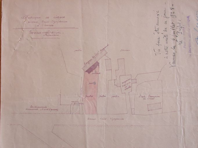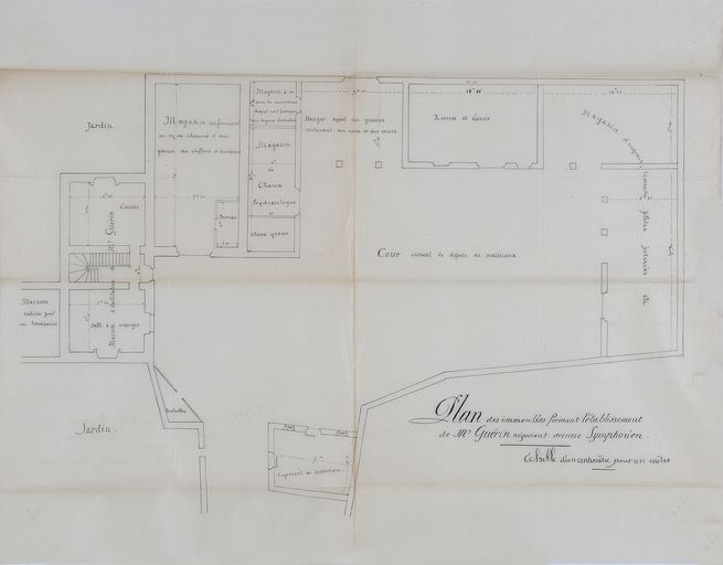 Le couvrement de la cour par la société Petit, usine de matériel agricole, en 1948 (d'après la demande de permis de construire déposée) ne semble pas avoir modifié l'aspect extérieur des bâtiments. Les percements modernes semblent antérieurs à cette date. Le projet est décrit comme suit : soubassement du mur sur avenue proposé en moellons apparents, enduit de façade en teinte jaune clair, lettres en fer peintes, couverture en tôle ondulée avec lanterneau vitré, charpente et poteaux en fer.
