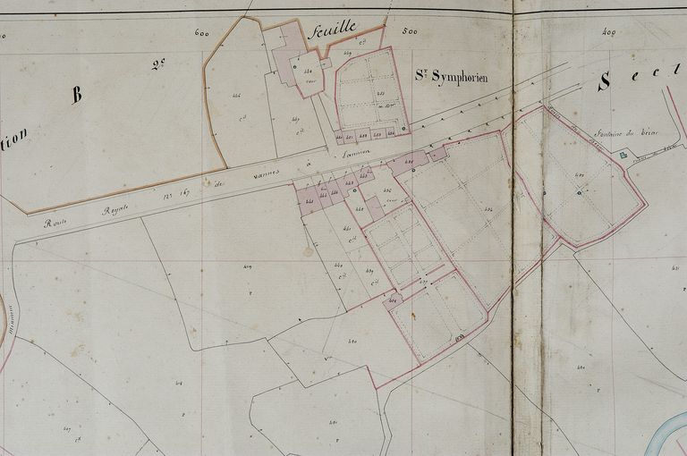 Le prieuré Saint-Symphorien qui pourrait être un des plus anciens établissements monastiques de Vannes, s´installe à proximité de la voie antique de Vannes à Corseul en un lieu urbanisé dès l´époque gallo-romaine. Il restera cependant isolé jusqu´à la fin du XIXe siècle. Il dépendait du prieuré de Saint-Jean-des-Prés en Guillac, fondé en 1130. Les bâtiments qui consistaient en une chapelle, une maison et divers immeubles, vendus comme bien national en 1791, sont visibles sur le plan d´embellissement de 1785, ainsi que sur les plans cadastraux de 1809 et 1844. Autour d´une cour close de murs en retrait de l´avenue se répartissent la chapelle à l´ouest et le logis prioral au nord.