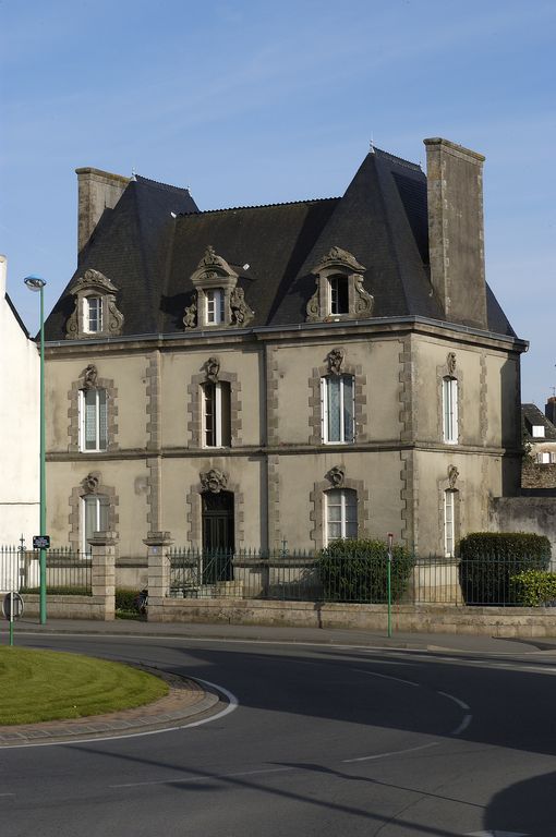 Construction de plan massé entre cour et jardin avec une travée centrale en léger retrait. Elle présente une façade ordonnancée avec un décor sur les ouvertures très abondant. Les clefs d'arc sont sculptées de coquille, têtes d'animaux (sanglier, chevreuil, etc) et de lion porte- blason pour la lucarne centrale. La façade antérieure est enduite. Les encadrements des ouvertures, les bandeaux rythmant la façade sont en pierre de taille. L'escalier est axial médian.