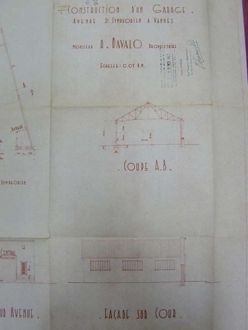 A. M. Vannes. 35 W. Permis de construire : Davalo Roger, avenue Saint-Symphorien, 1947.